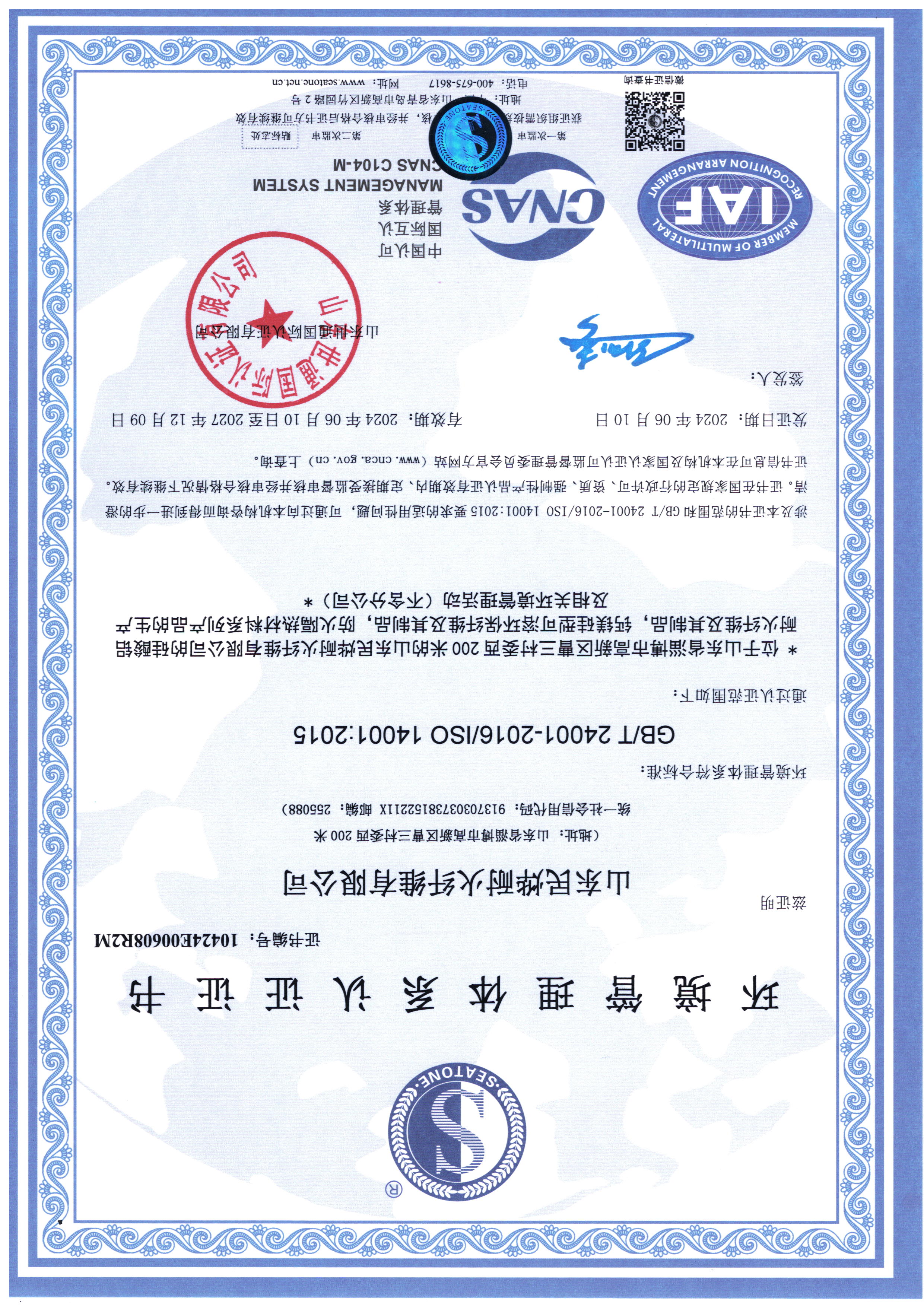 • 2024年環境體系認證證書